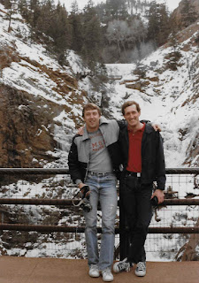 Most of the photos above with Rob in the maroon, sleeveless sweat shirt, were from his and his BF in yellow jacket and friend in the gray T-shirt (Rick Steen). They visited my place in Colorado Springs in 1985. We drove to Garden of the Gods and to the Air Force Academy. And to a lovely canyon near the Springs that was still covered with snow and a cold, running stream nearby. I always had the hots for Rob's friend, Rick Steen. Great chest. The last time Rob and I spoke when I forwarded these pics and the others from that visit, Rob said Rick was just as hunky but totally bald.